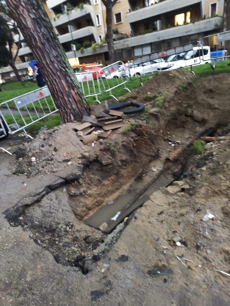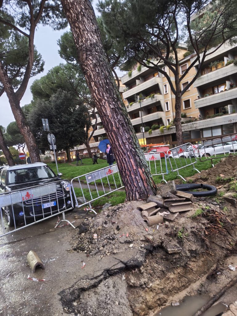 Paura nel quartiere per un pino ad alto rischio crollo presumbilmente dopo lavori di manutenzione idrica: secondo una testimonianza diretta, gli operai incaricati avrebbero reciso le radici principali, lasciando l’albero instabile e già in movimento