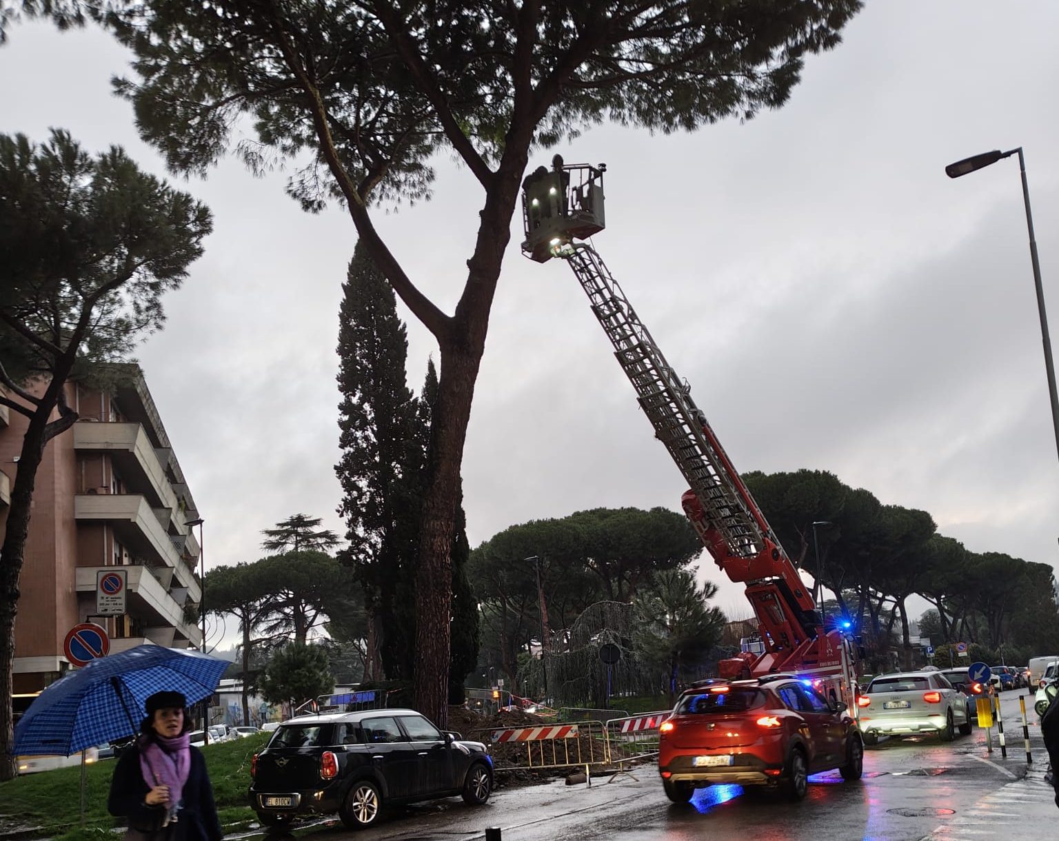 Paura nel quartiere per un pino ad alto rischio crollo presumbilmente dopo lavori di manutenzione idrica: secondo una testimonianza diretta, ...