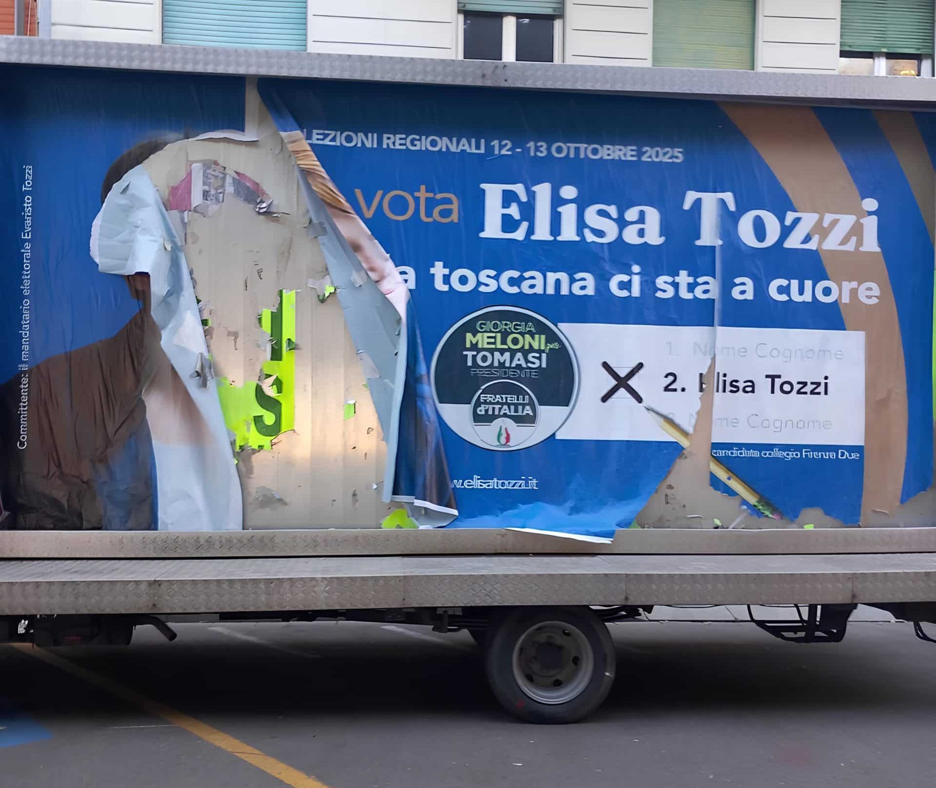 Tozzi (Fdi), “Vandalizzata la mia vela elettorale: il fascismo rosso è ben presente in Toscana”