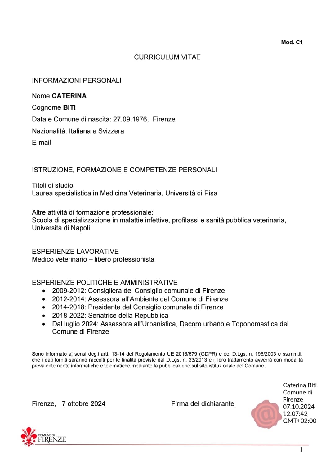 La domanda sorge spontanea: chi ha in mano le deleghe oggi? Risposta: Caterina Biti. Quali competenze ha Biti per gestire una Firenze secondo molti sfigurata da interventi, come il cubo nero, l’ex convitto della Calza o l’ex ospedale di San Gallo? Spulciamo il cv pubblico.