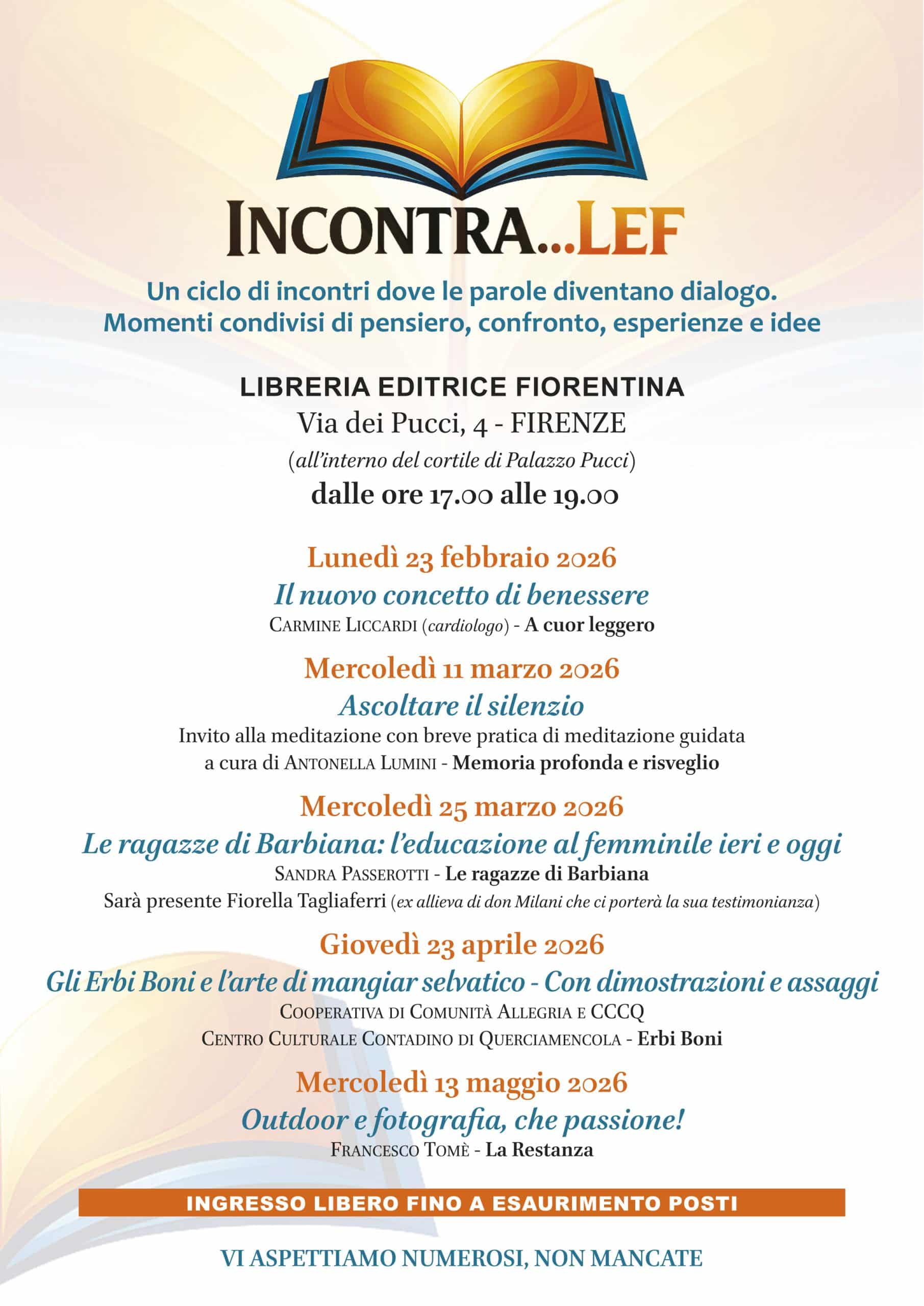 È iniziato Incontra…LEF, il nuovo ciclo di incontri della Libreria Editrice Fiorentina. Incontri anche ad aprile e maggio.