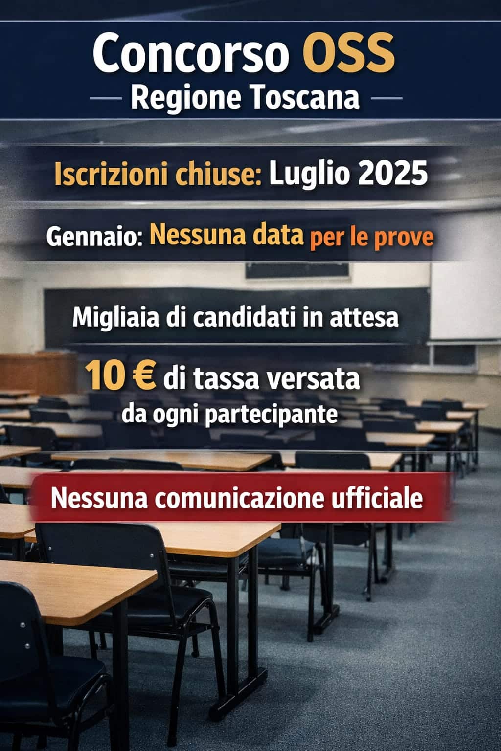 Scrivo questo articolo come cittadino e per conto dei tanti candidati che, nel luglio 2025, hanno partecipato al concorso pubblico indetto dalla Regione Toscana tramite ESTAR per la copertura di un posto da Operatore Socio-Sanitario (OSS). Entro i termini previsti dal bando, migliaia di persone hanno presentato regolarmente domanda, versando anche il contributo di partecipazione di 10 euro richiesto per l’iscrizione. Da quel momento, però, il silenzio.