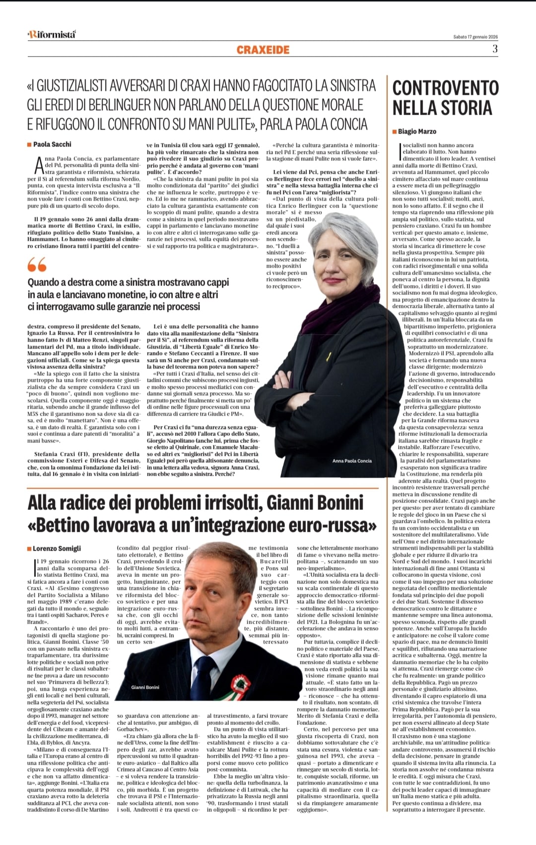 La rottura della subalternità al PCI e la costruzione di un progetto riformista non limitato all’Italia, pur quarta potenza, ma continentale, Russia compresa. “L’Italia” allora “era quarta potenza mondiale” e il Partito Socialista Italiano “aveva rotto la deleteria sudditanza al PCI, che aveva contraddistinto il corso di De Martino, condito dal peggior risultato elettorale”; in più, il segretario Bettino Craxi “prevedendo il crollo dell’Unione Sovietica” lavorava per “una transizione in chiave riformista del blocco sovietico e per una integrazione euro-russa che, con gli occhi di oggi, avrebbe evitato molti lutti, a entrambi, ucraini compresi”. “In un certo senso guardava con attenzione anche al tentativo, pur ambiguo, di Gorbachev”.