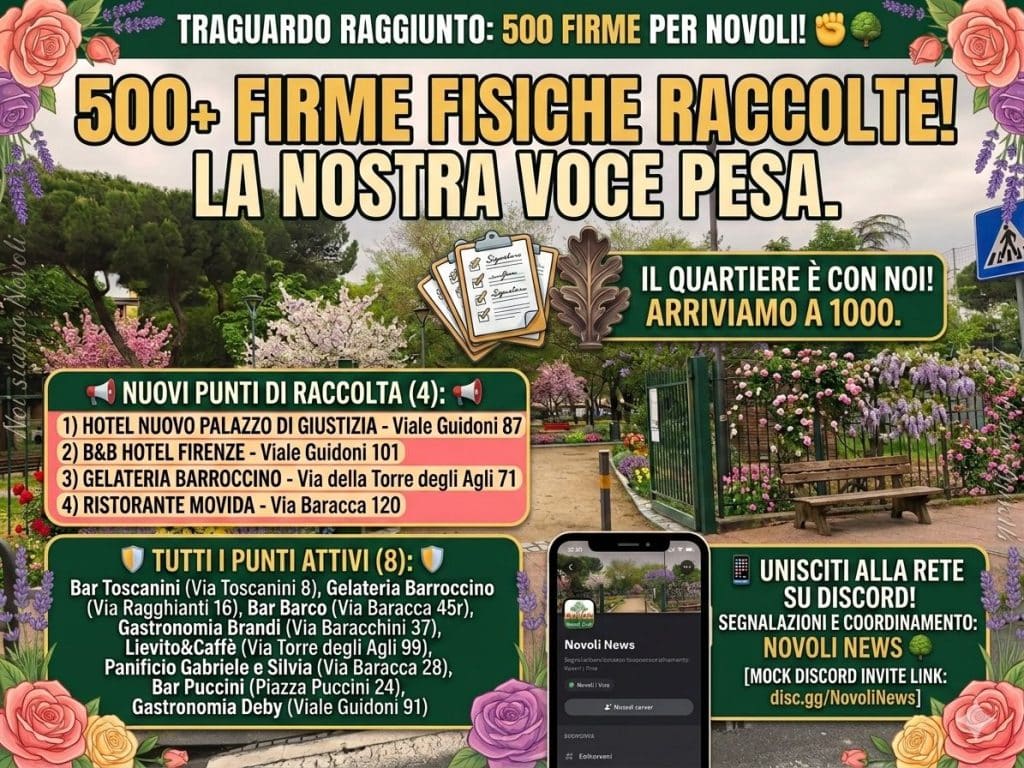 A Novoli sono già centinaia le firme raccolte per l’iniziativa dei residenti per riportare condizioni di sicurezza e vivibilità nel giardino di Piazza delle Medaglie d’Oro. L’area verde lungo via Baracca è da tempo al centro di segnalazioni legate a episodi di microcriminalità, presenza di gangs e fenomeni di degrado urbano. Negli ultimi mesi si sono verificati diversi fatti di cronaca, tra cui aggressioni, risse, attività di spaccio e un incendio che hanno progressivamente ridotto la frequentazione dello spazio da parte delle famiglie.