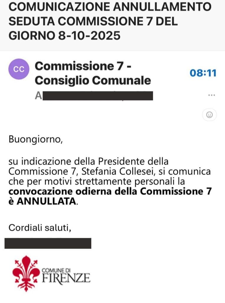 A tre giorni dalle elezioni regionali, il Partito Democratico fiorentino incappa in un nuovo scivolone politico. La Commissione 7 del Comune di Firenze, dedicata a pace, diritti umani e immigrazione, ha annullato all’ultimo minuto la seduta prevista per discutere la proposta di conferire la cittadinanza onoraria a Francesca Albanese, relatrice speciale ONU per i Territori Palestinesi.